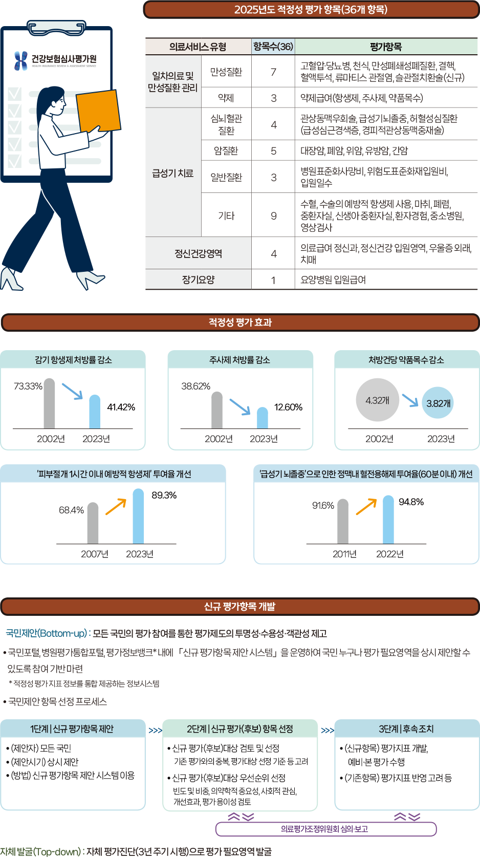 병원에서 진료를 받을 때, 각종 검사를 비롯한 의료 행위가 적정한 지 문득 궁금할 때가 있다. 건강보험심사평가원에서는 건강보험으로 제공하는 각종 의료서비스가 의료의 질을 향상하기 위해 효과성, 효율성, 환자안전, 환자중심성 등의 측면에서 적정하게 제공되었는지 평가하는 업무를 수행한다. 의료서비스의 질 향상과 비용부담의 적정화를 위한 적정성 평가가 무엇인지 자세히 알아보자.
