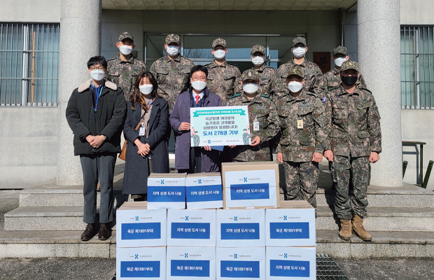1월 20일 ‘내가 다 읽은 책, 원주 지역과 함께 나눠요!’라는 슬로건 아래, 직원들의 도서를 기증받아 18 91부대와 원주시립 미리내도서관에 각각 278권, 127권을 전달했다. 이번 도서 기증 프로그램을 시작으로 ‘독서특강’ 및 ‘저자와의 대화’ 등 다양한 독서 프로그램을 진행해 지역주민과 함께 교류하며 독서문화 확대 활동에 앞장설 계획이다.