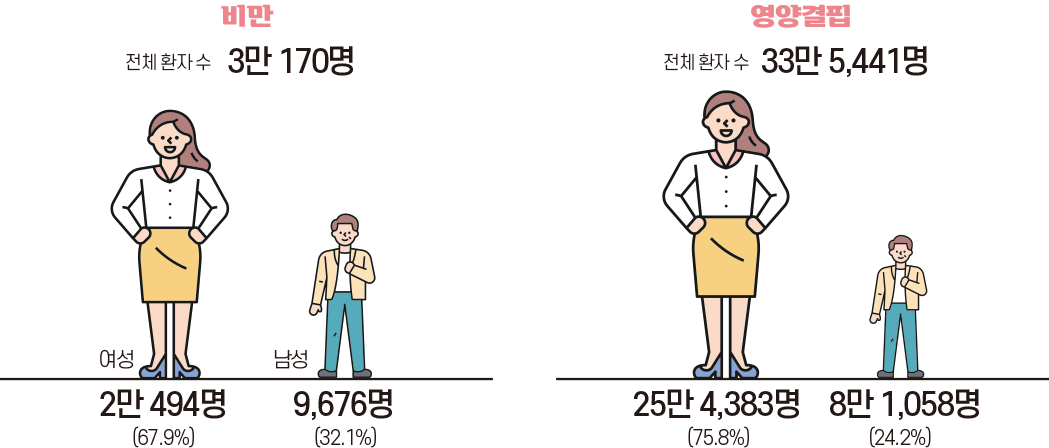 비만, 영양결핍 전체 환자수 비교