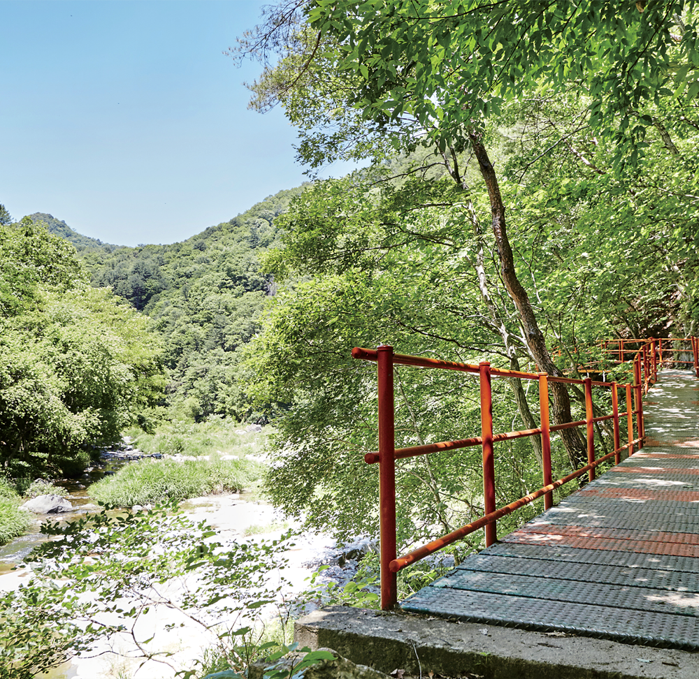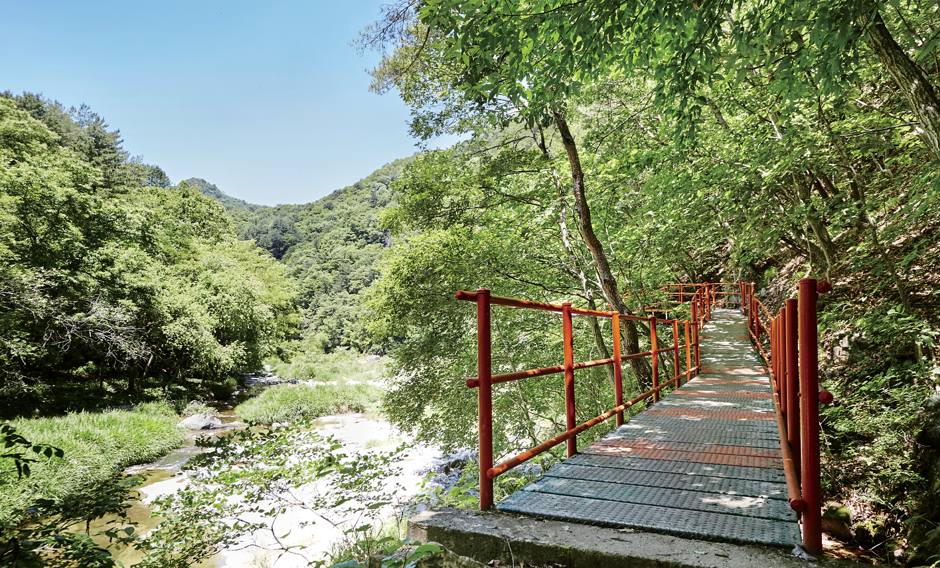 시원한 계곡물과 출렁다리가 있어 먼 여행길에 나선 듯한 기분도 만끽할 수 있다.