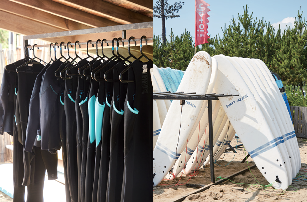 기암절벽과 노송이 어우러진 하조대 주변에는 너비 100m, 길이 1,000m, 면적 8만 2,644㎡(2만 5,000평)의 서핑 전용 해변이 펼쳐져 있다. 경사가 완만해 북쪽의 모래가 하조대에 쌓이면서 수심이 얕고 샌드바가 형성된 곳이 많아 서핑하기 좋은 환경이다. 태양만큼이나 뜨거운 열정을 가진 서퍼들이 모여드는 서피비치는 양양의 핫 플레이스로 자리매김했다.