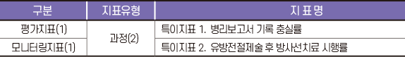 - (특이지표) 총 2개 지표: 평가지표 1개, 모니터링지표 1개