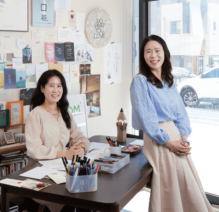 모든 것이 빠르게 변화하기 때문에 조금 느리고 정성 어린 것들이 더욱 소중해진 요즘. 두 사람이 마음을 가득 담아 완성한 글귀가 더욱 특별하게 느껴진다.