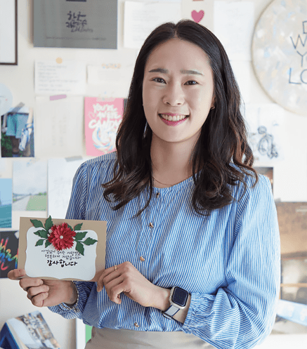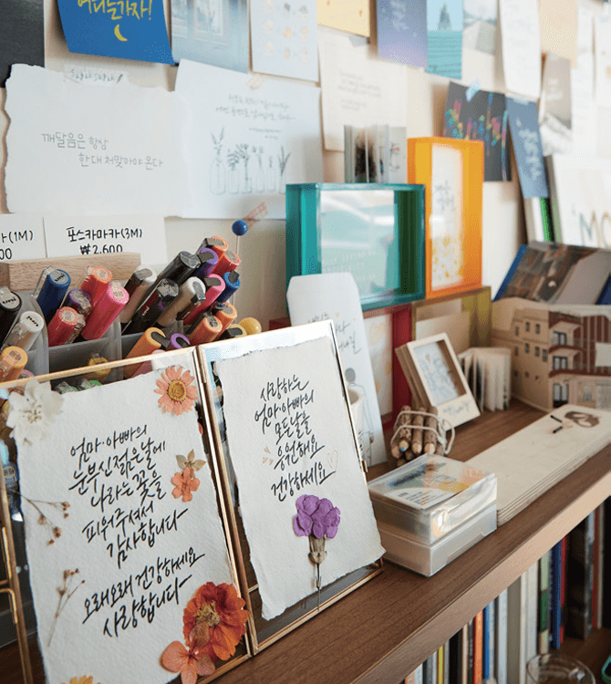 “가정의 달 5월을 맞아 부모님께 전하는 글귀를 작성했지만, 공방에 전시된 긍정적인 글귀를 보는 것만으로도 따듯한 위로를 받았어요. 완성작만 볼 땐 몰랐는데 직접 해보니 캘리그래피는 단순히 글을 쓰는 것이 아니라 펜 끝에 마음을 담아 전하는 그림 같다는 생각이 들었습니다.”