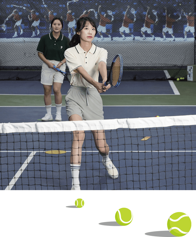 정 대리는 운동을 좋아하지 않지만 굳이 꼽는다면 배드민턴, 발야구 등 구기 종목이 좋다고 했다. 상대와 호흡하며 즐길 수 있는 운동이라 더욱 좋다고. 이유리 주임과 함께하니 코트 러닝부터 얼굴에 웃음이 끊이지 않는다. 둘은 포핸드&백핸드, 스트로크 등 기본 테니스 자세를 배우고 볼을 주거니 받거니 하는 랠리(Rally)를 하며 연신 밝은 분위기를 만들어낸다. 미니게임에 이어 볼 머신기를 이용해 테니스 체험을 하는 사이 이마에 건강한 땀방울이 흐른다. ‘다름’을 공유하다 보니, 어느새 ‘같음’이 많아진 둘은 서로를 바라보며 밝게 웃는다.