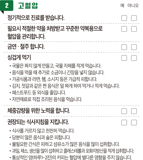 • 건강보험심사평가원은 국민 건강 증진에 도움이 되고자 고혈압, 당뇨병 등 국민 관심질환 정보와 의료 질 향상 실천 체크리스트*를 심평원 블로그에서 제공하고 있습니다.
