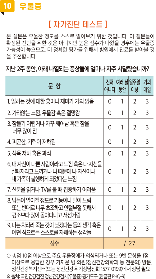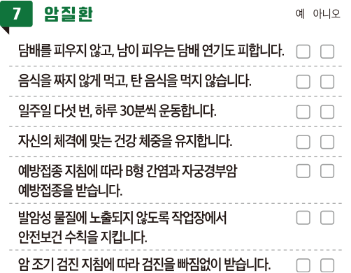 만성질환을 예방하기 위해 규칙적으로 유산소운동을 하고, 정기적으로 병원을 방문하며 우울증 경고신호를 무심코 지나치지 않는 등의 활동 모두가 포함됩니다.