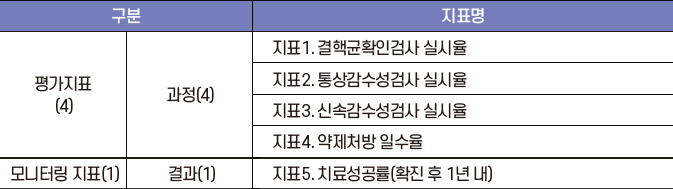 이에, 정부의 결핵 퇴치 대책과 연계하여 결핵 신환자의 발생률을 줄이고, 표준화된 진단을 유도하는 등 다각적인 환자 관리 및 질 향상을 도모하기 위해 결핵 적정성평가를 실시하고 있습니다.