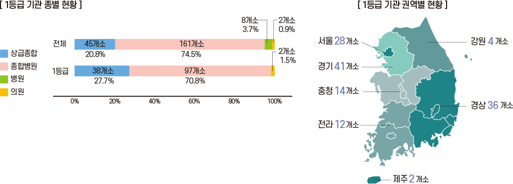 216개소 중 1등급 기관은 137개소(63.4%)로 나타남