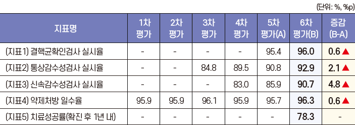 • 6차 평가에 신설된 치료성공률은 78.3%로 확인됨
