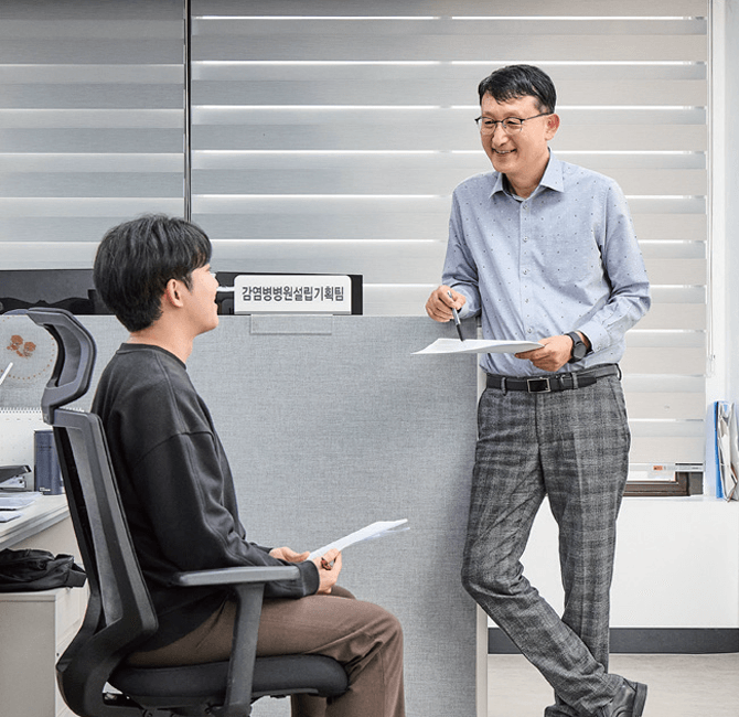 중앙감염병병원 설립추진단은 국가적 감염병에 대응하는 중심축이 되는 기관인 감염병전문병원을 새롭게 짓기 위해 많은 노력을 기울이고 있습니다. 현재 설립추진단은 2030년 건립을 목표로 설립기획팀, 연구기획팀, 정보통계팀 등 3개 팀을 구성해 각자 맡은 역할을 수행하고 있습니다. 향후 의료기관으로서 진료적인 역할에 충실을 기하고, 여기에 더해 감염병에 대한 교육과 연구 역량을 강화해 어떠한 감염병이 발생하더라도 즉시 투입 가능한 인력을 양성하고 관리할 예정입니다. 중앙감염병병원 개원 전이라도 국가 공중보건위기 대응체계 내 감염병 의료 대응의 컨트롤타워로서 역할 수행에도 최선을 다하겠습니다.