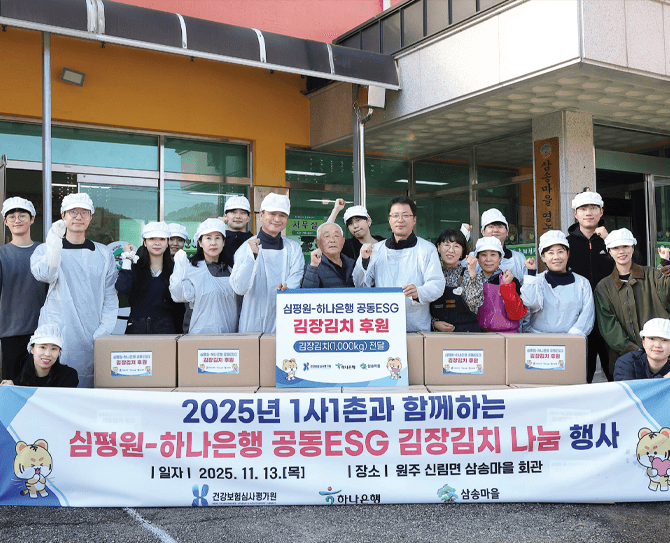 이번 김장나눔 활동은 단순한 일회성 행사가 아니라, 심평원과 하나은행이 공동으로 추진해온 지역상생 ESG 프로젝트의 대표적 모델로 자리 잡았다. 심평원은 앞으 로 도 공 공기관으 로서 사회적 책임을 다하기 위해 환경·사회·지배구조 전반에서 ‘지속가능한 지역사회 동반성장’을 목표로 다양한 협력 사업을 확대해나갈 계획이다.