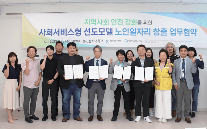 6월 28일, 심사평가원과 한국노인 인력개발원, 강원도사회경제적지원센터, 마 을안전지원센터 사회적협동조합은 상지대학교에서 ‘실버보안관 및 안전신문고 사업’을 위한 업무협약을 체결했다. 이 사업은 안전상태불량 공공시설물 신고·개선, 안심귀가 순찰 및 지도 등 어르신과 지역주민이 수행하는 지역사회 안전망 구출 활동이다. 건강보험심사 평가원은 인건비등 예산을 지원해 공공-민간협업을 통한 원주지역 노인일자리 창출에 기여했다.