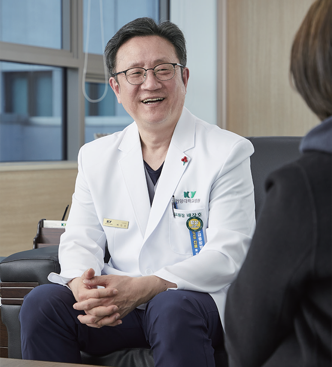경상도 남자 특유의 무뚝뚝한 말투 때문에 간혹 오해받기도 하지만, 알고 보면 환자들에게 꽤 인기 있는 의사라 자부하는 배장호 의료원장. 하루 200명이 넘는 외래환자를 보기도 했다니 근거 있는 자신감으로 이해해도 좋을 것 같다. 소중한 생명을 지켜내는 것이 의사의 사명인 만큼 앞으로도 환자들에게 도움이 되고, 동료와 후배들에게도 본보기가 되는 의사로 남고 싶다는 것이 배장호 의료원장의 소망이다.