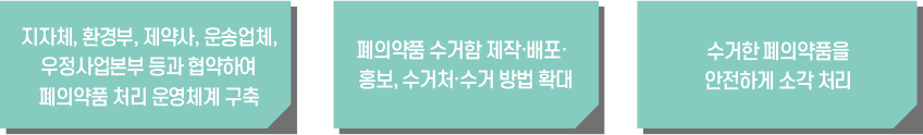 폐의약품 배출에 대한 접근성을 향상하고 올바른 폐의약품 배출 문화를 확산하기 위해 건강보험심사평가원에서는 다음과 같은 사업을 추진했습니다.