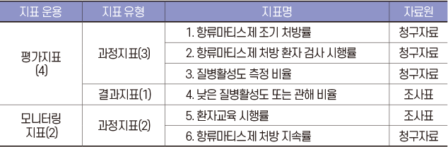 ○ 총 6개 지표(평가지표 4개, 모니터링 지표 2개)
